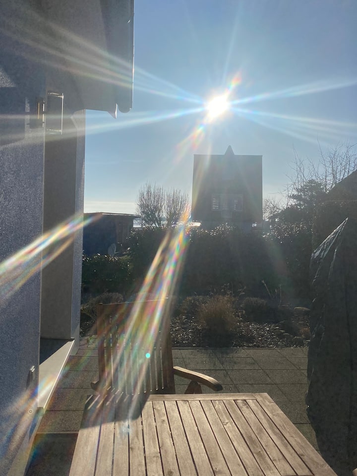 Genießen Sie ruhige Stunden auf Ihrer eigenen Terrasse, umgeben von einem liebevoll angelegten Garten direkt am Meer. Die ebenerdige Lage ohne Treppen ist ideal für Familien mit Kindern und Haustierbesitzer, die einen sicheren Außenbereich schätzen.